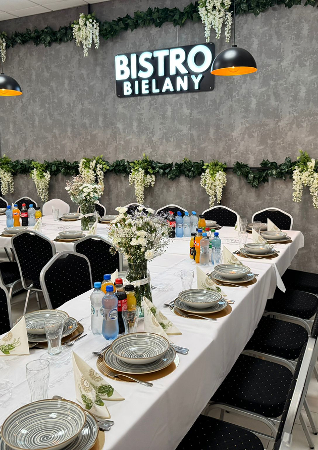 Bistro Bielany to miejsce stworzone z myślą o mniej formalnych wydarzeniach, które wciąż potrzebują stylowej oprawy i dopracowanego menu. Nowoczesne wnętrze z elementami betonu, zielenią i przeszklonymi ścianami doskonale wpisuje się w klimat okolicznych biurowców i sprzyja swobodnym spotkaniom.